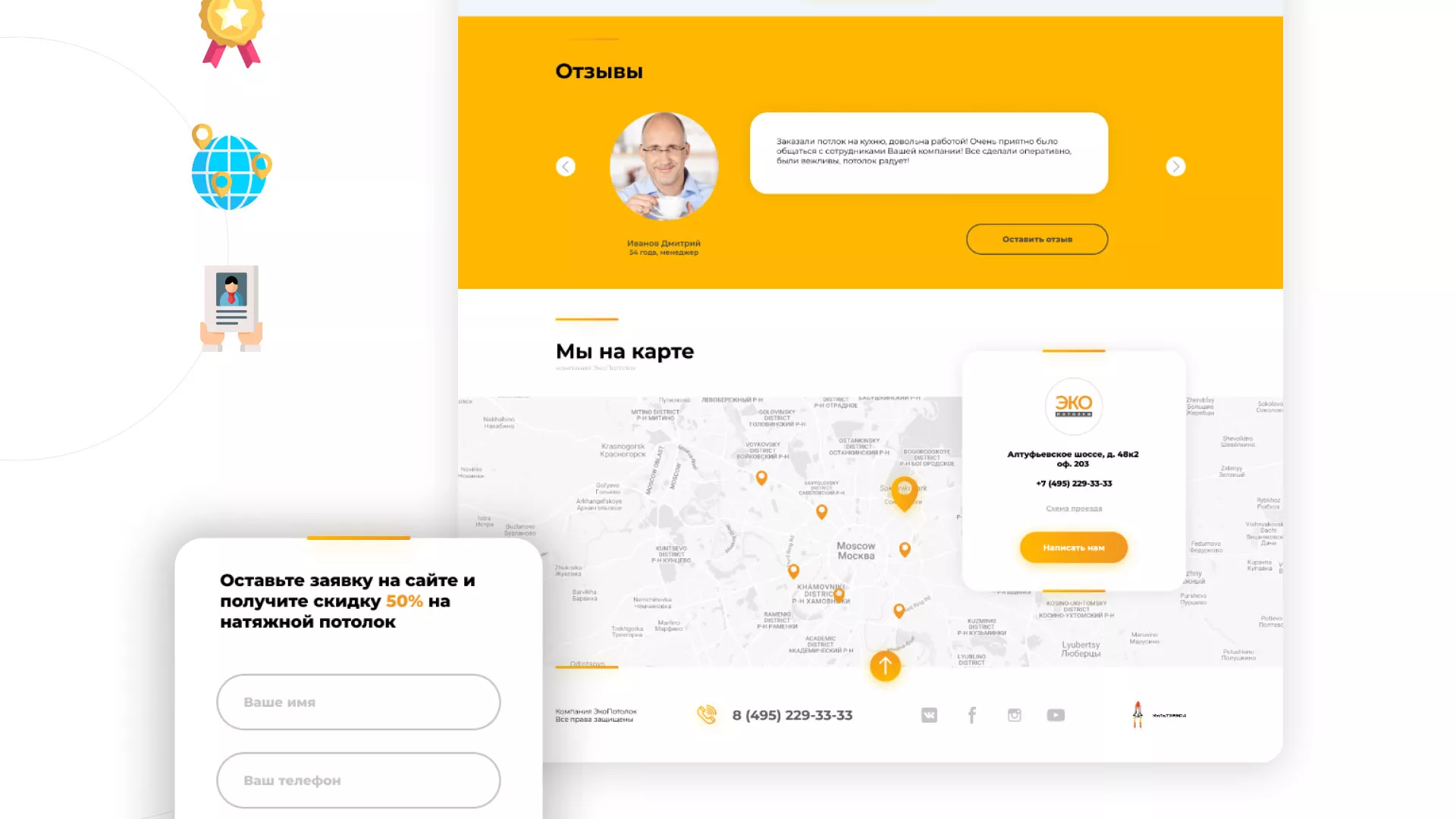 Вам нужна разработка сайта по натяжным потолкам в Междуреченске? Специалисты компании «Мультзавод» готовы помочь! Мы предлагаем большой выбор уже готовых вариантов, а также можем создать и что-нибудь новое!
